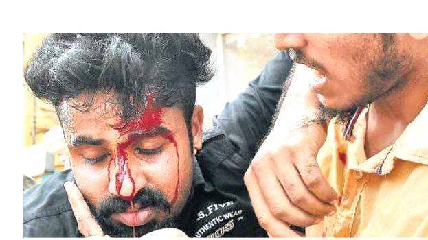 2)മന്ത്രി ബിന്ദുവിന്റെ വീട്ടിലേക്കുള്ള മാർച്ചിനിടെ കെ.എസ്.യു നേതാവ് നസിയയെയും രണ്ട് പേരുടെയും തലയ്ക്കും മുഖത്തും അടിച്ചു